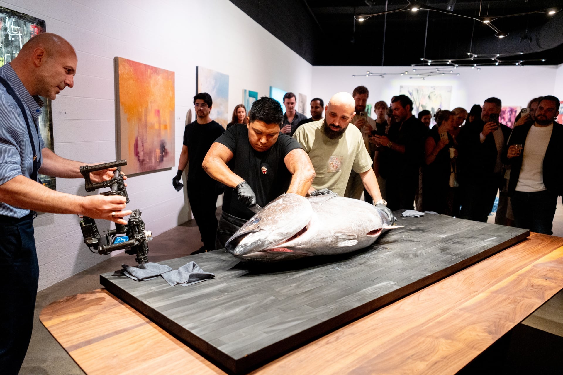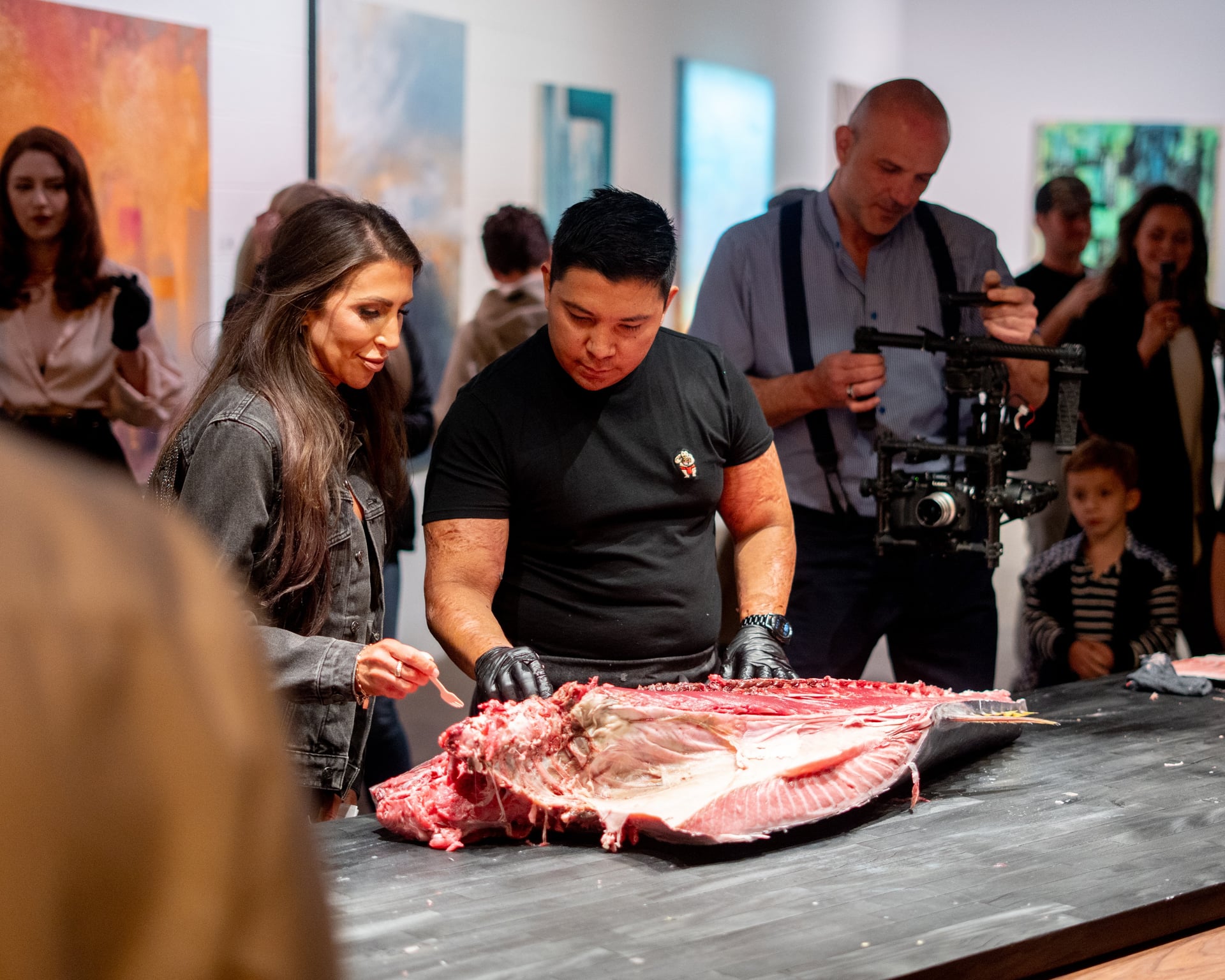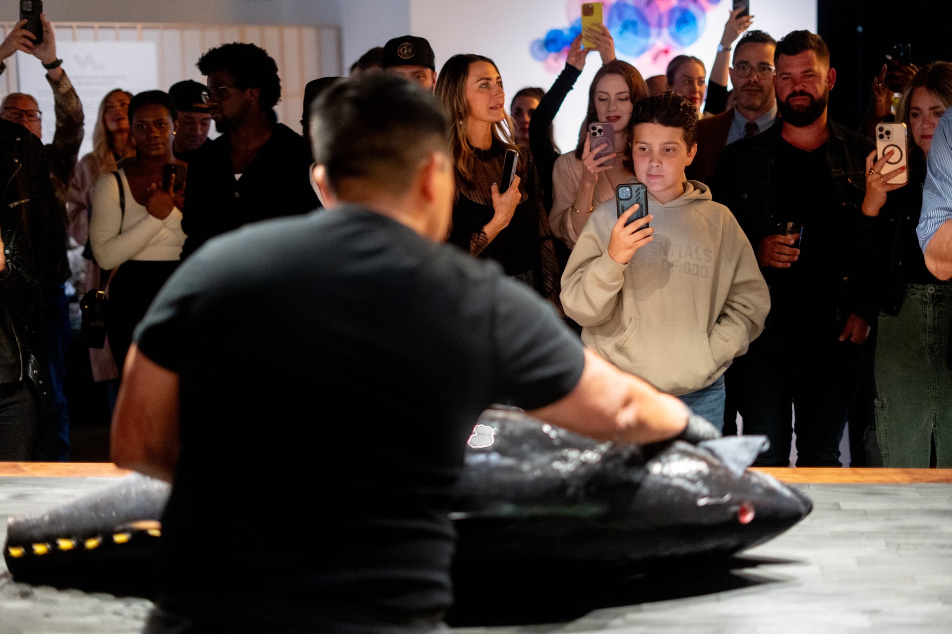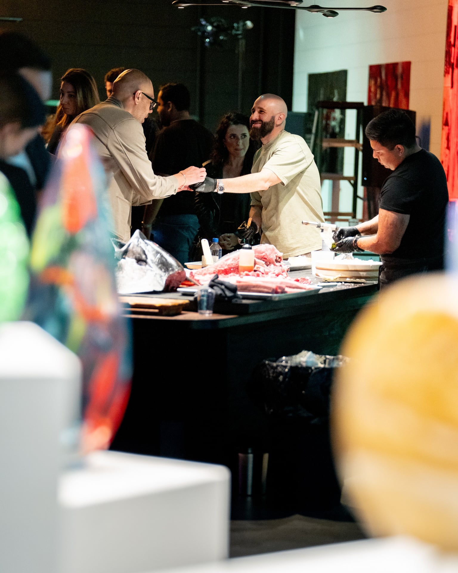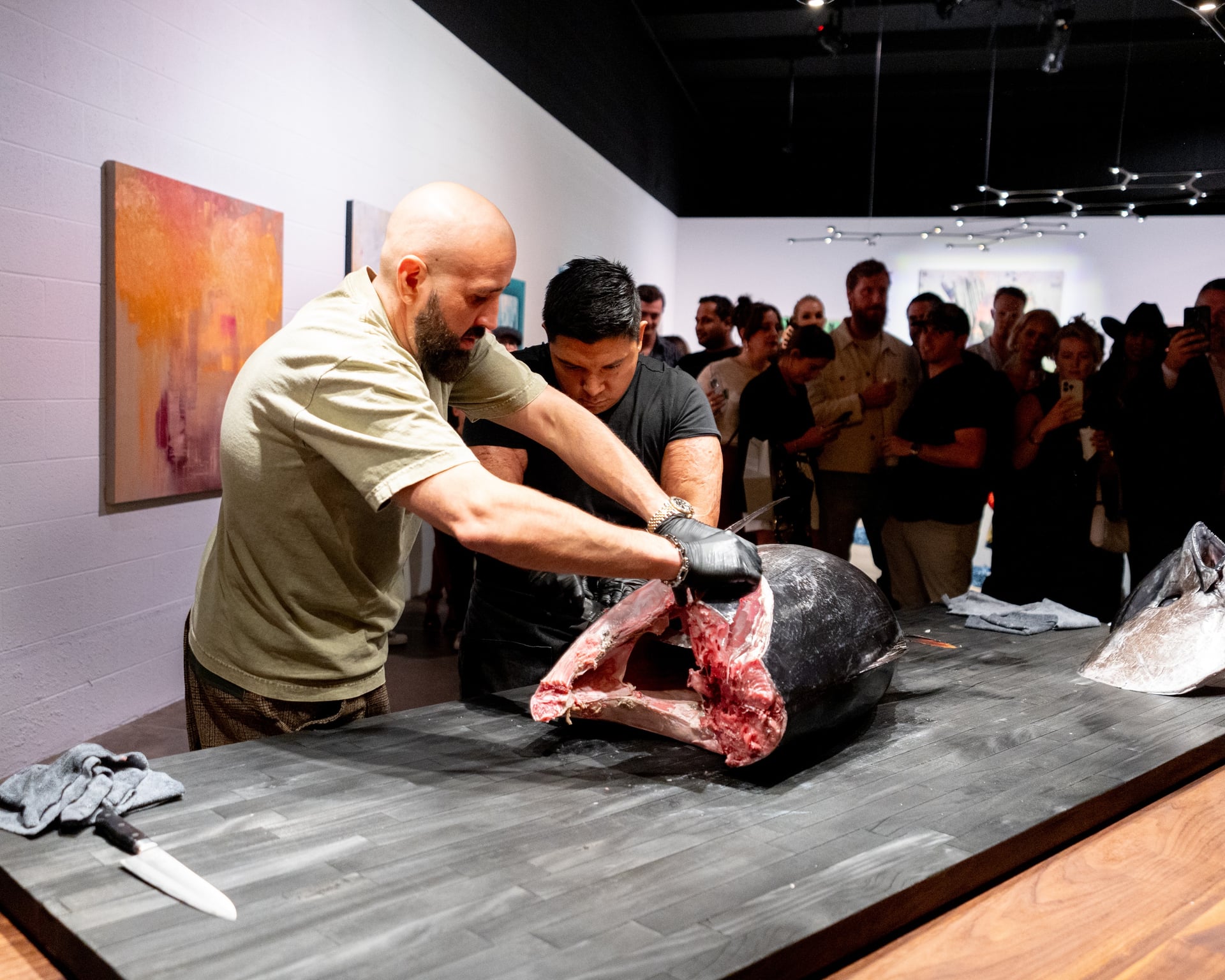 In a unique evening, the VAL gallery in Nashville became the perfect stage for a sensory experience that blended art, music, and gastronomy. Rey Bello, alongside Chef Alfredo Bueno from 888, and Tequila G4, brought together a 160-pound bluefin tuna from Spain, expertly cut by Alfredo to create six distinct dishes for an exclusive audience of 120 guests.