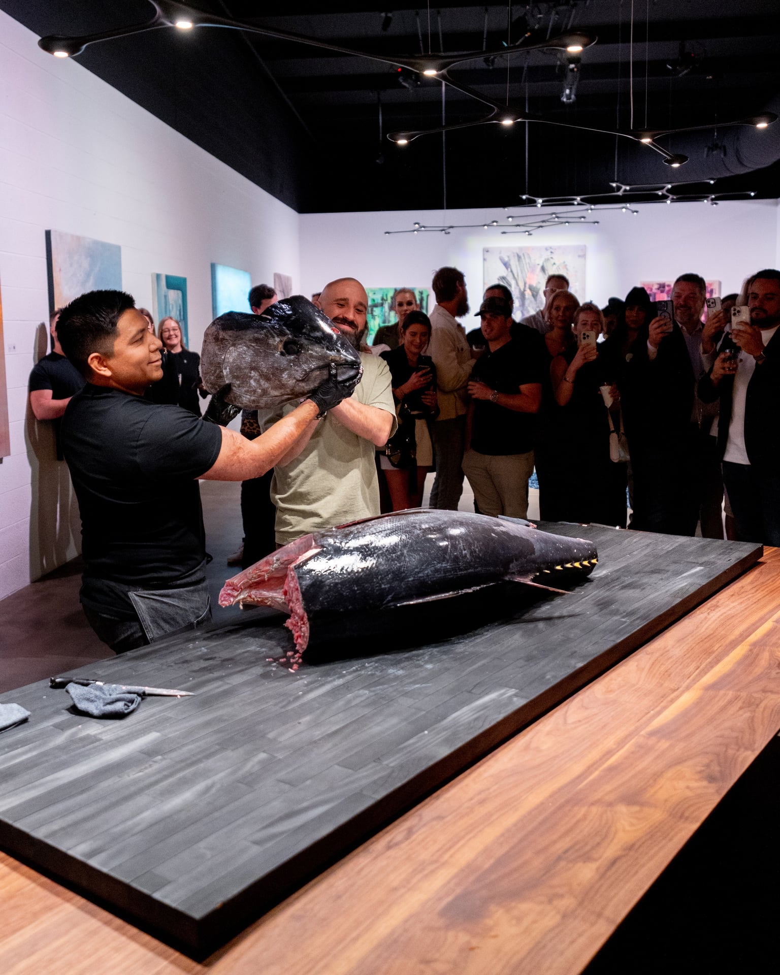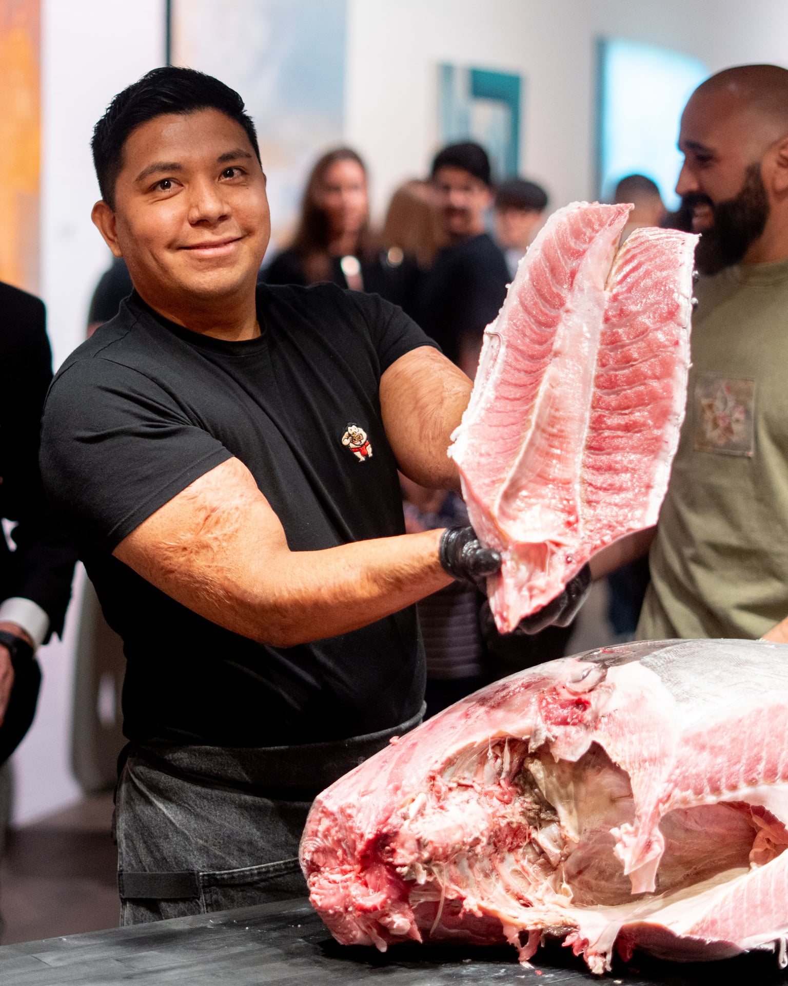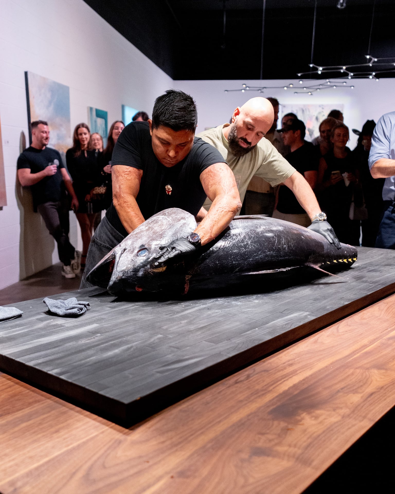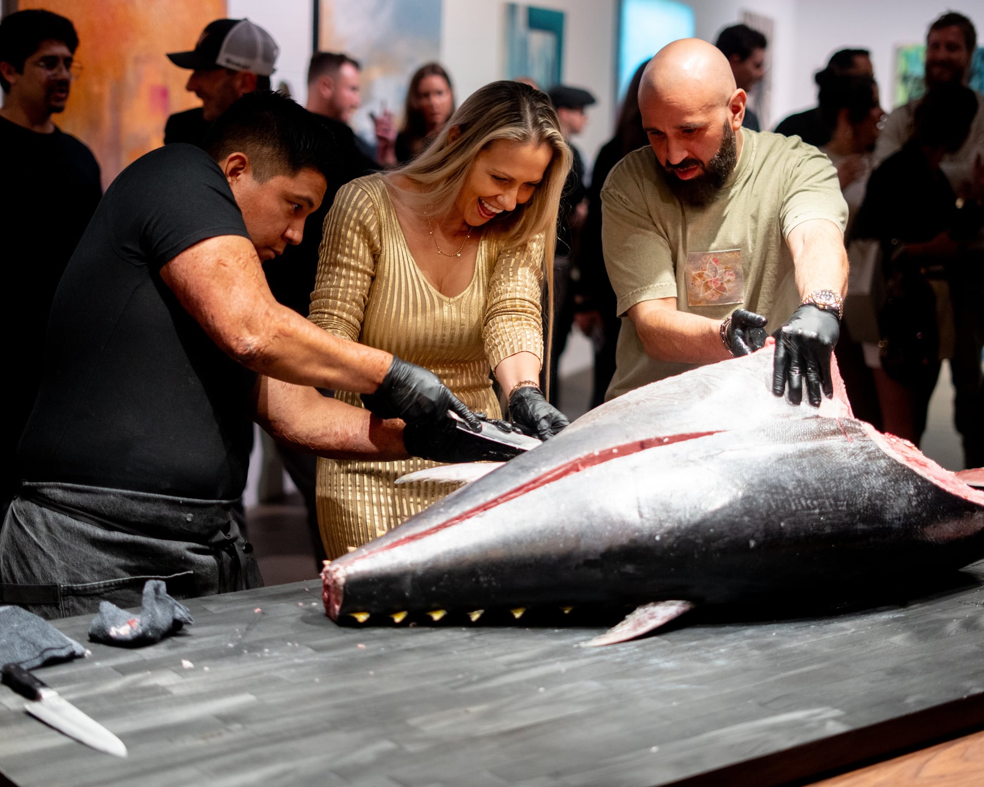 In a unique evening, the VAL gallery in Nashville became the perfect stage for a sensory experience that blended art, music, and gastronomy. Rey Bello, alongside Chef Alfredo Bueno from 888, and Tequila G4, brought together a 160-pound bluefin tuna from Spain, expertly cut by Alfredo to create six distinct dishes for an exclusive audience of 120 guests.