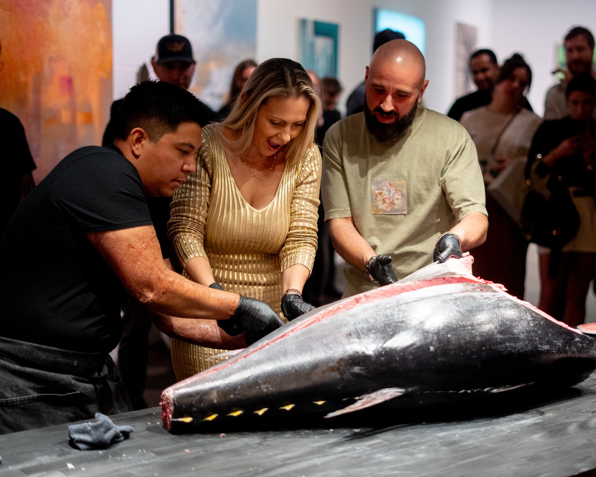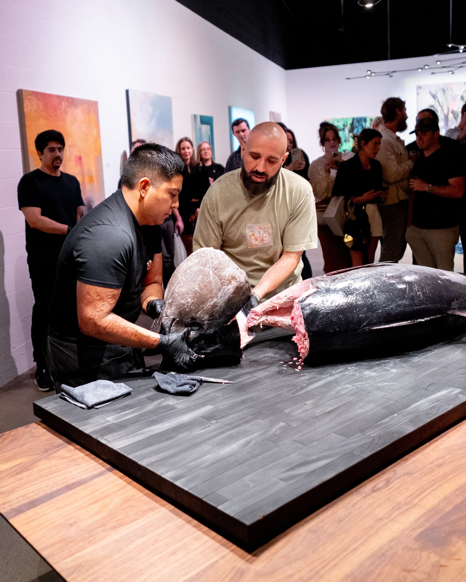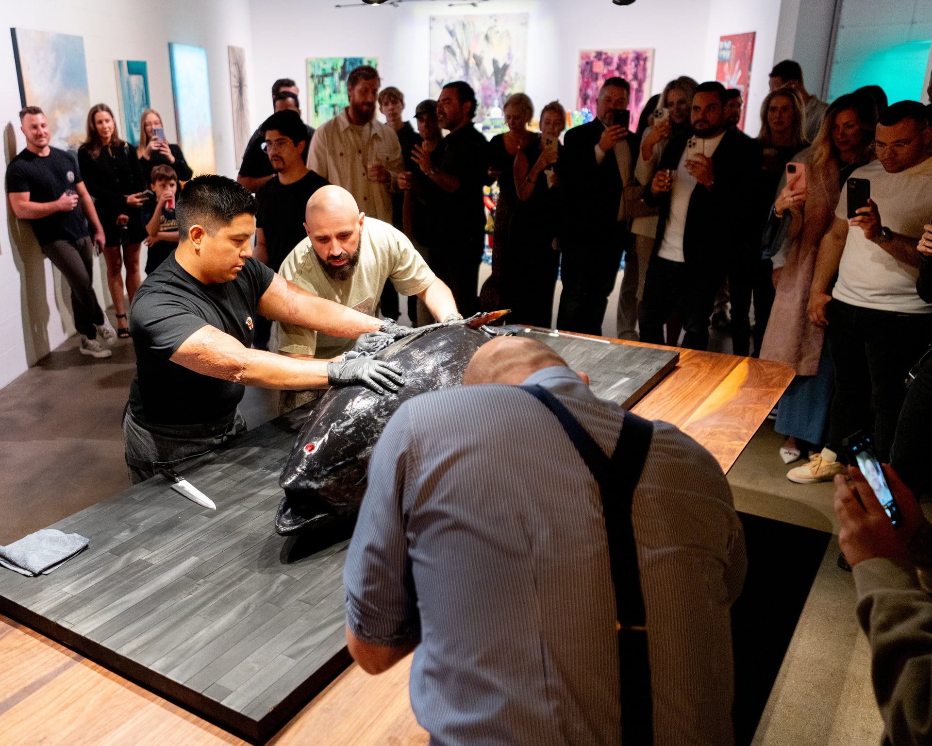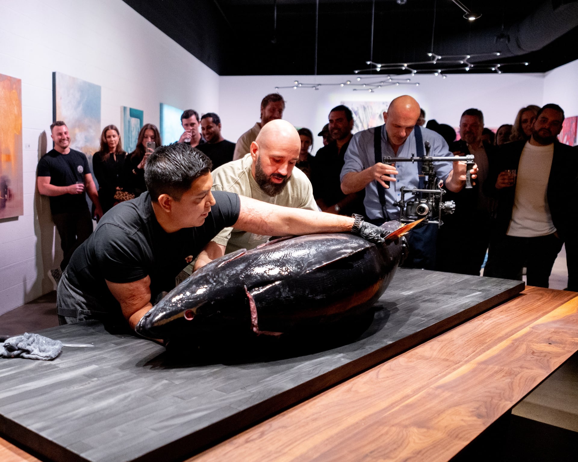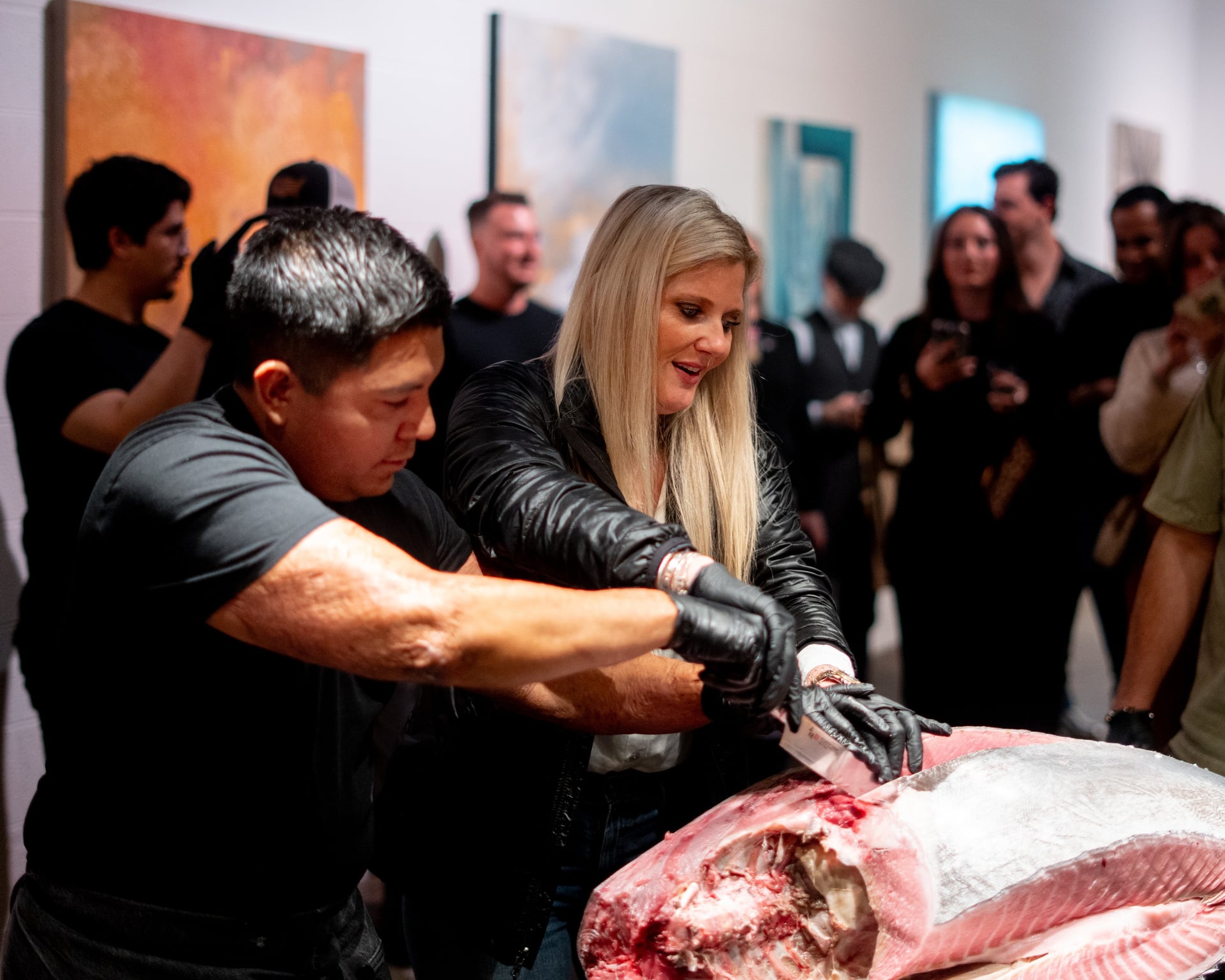 In a unique evening, the VAL gallery in Nashville became the perfect stage for a sensory experience that blended art, music, and gastronomy. Rey Bello, alongside Chef Alfredo Bueno from 888, and Tequila G4, brought together a 160-pound bluefin tuna from Spain, expertly cut by Alfredo to create six distinct dishes for an exclusive audience of 120 guests.