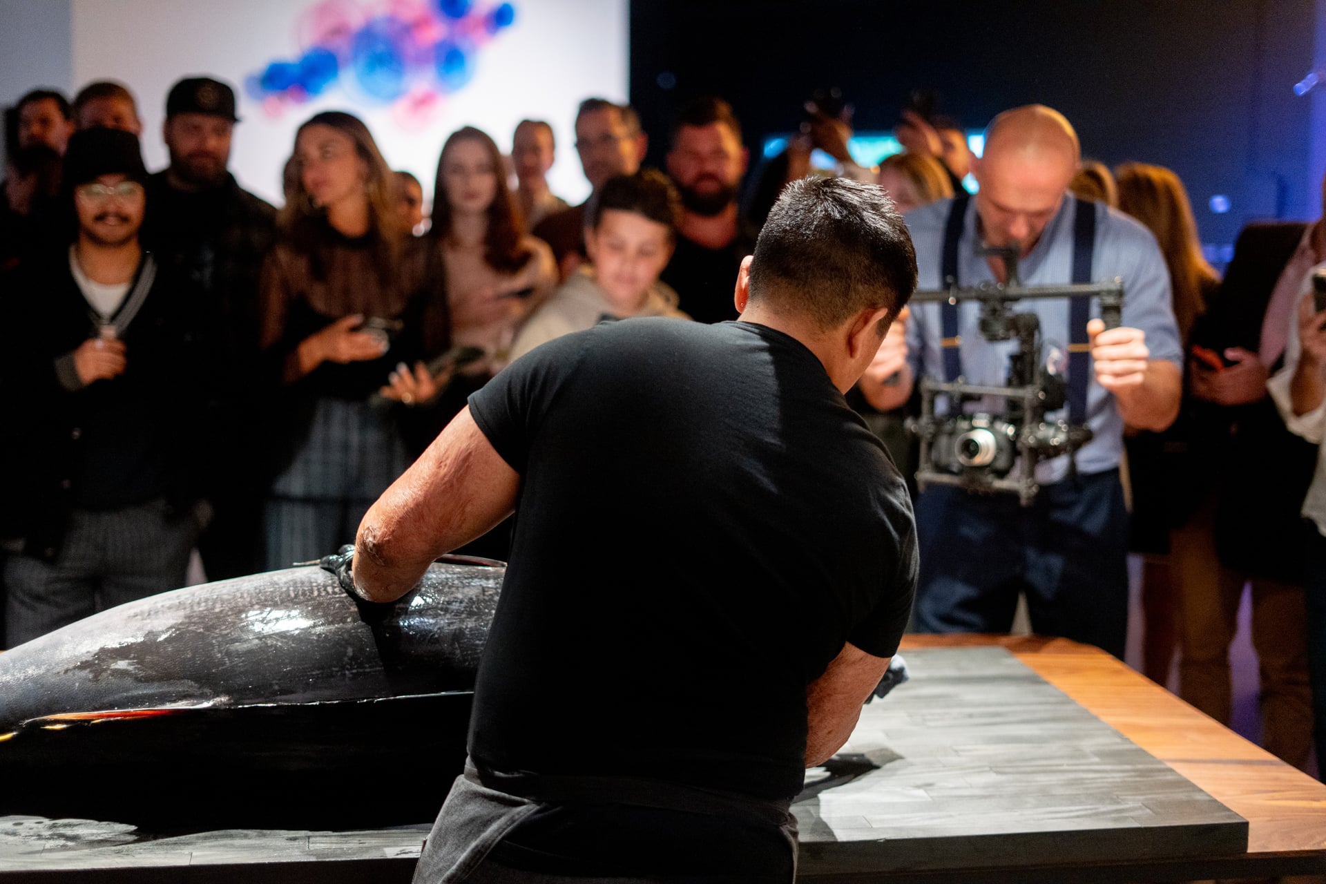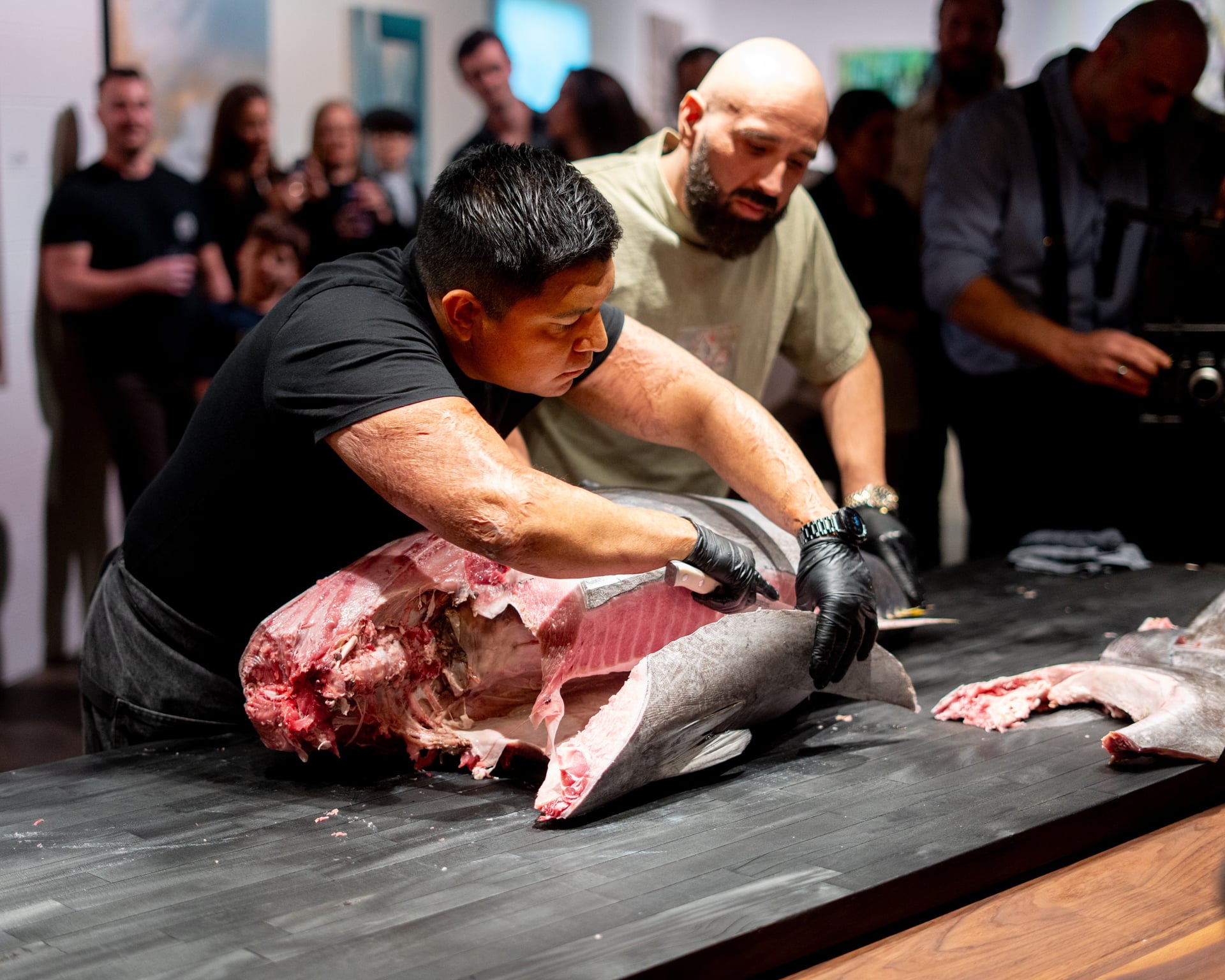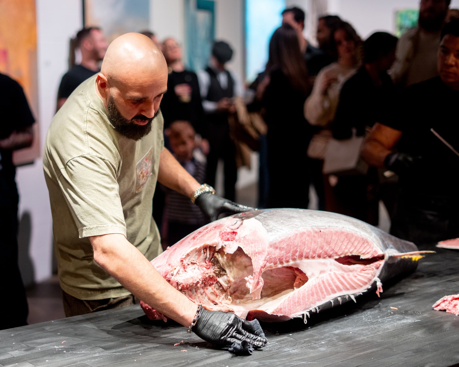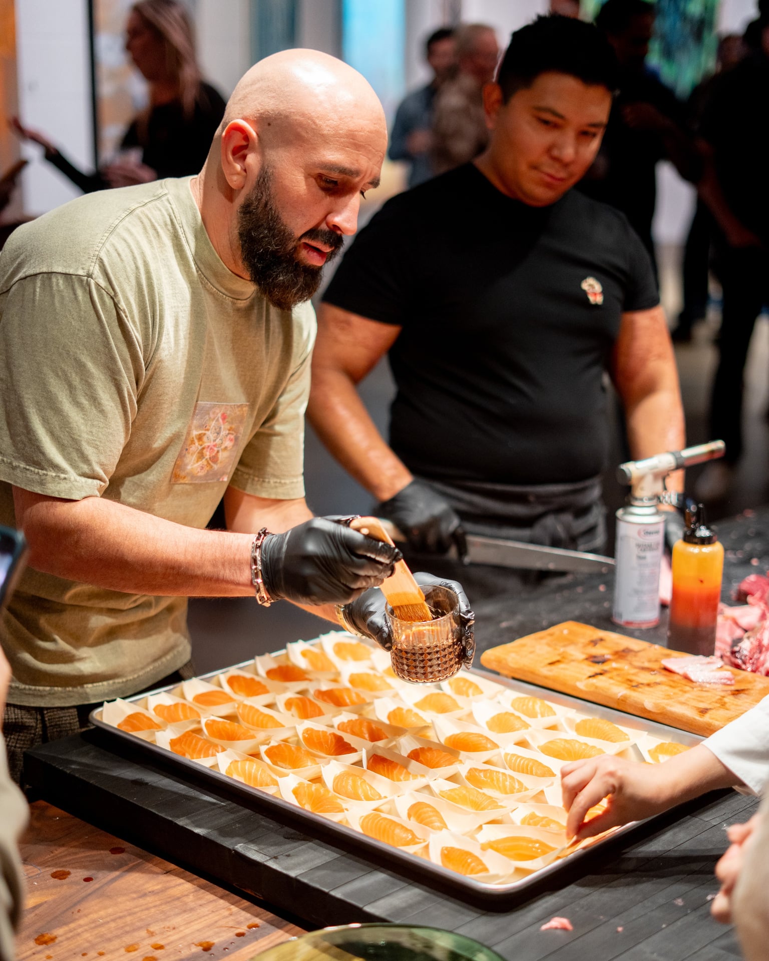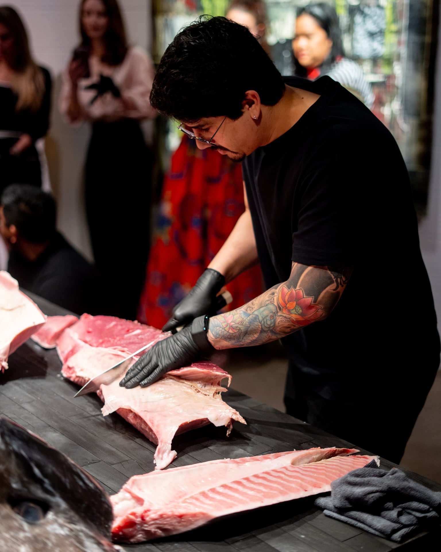 In a unique evening, the VAL gallery in Nashville became the perfect stage for a sensory experience that blended art, music, and gastronomy. Rey Bello, alongside Chef Alfredo Bueno from 888, and Tequila G4, brought together a 160-pound bluefin tuna from Spain, expertly cut by Alfredo to create six distinct dishes for an exclusive audience of 120 guests.