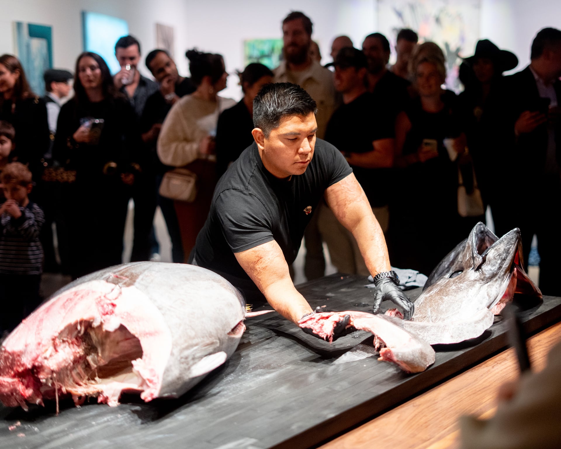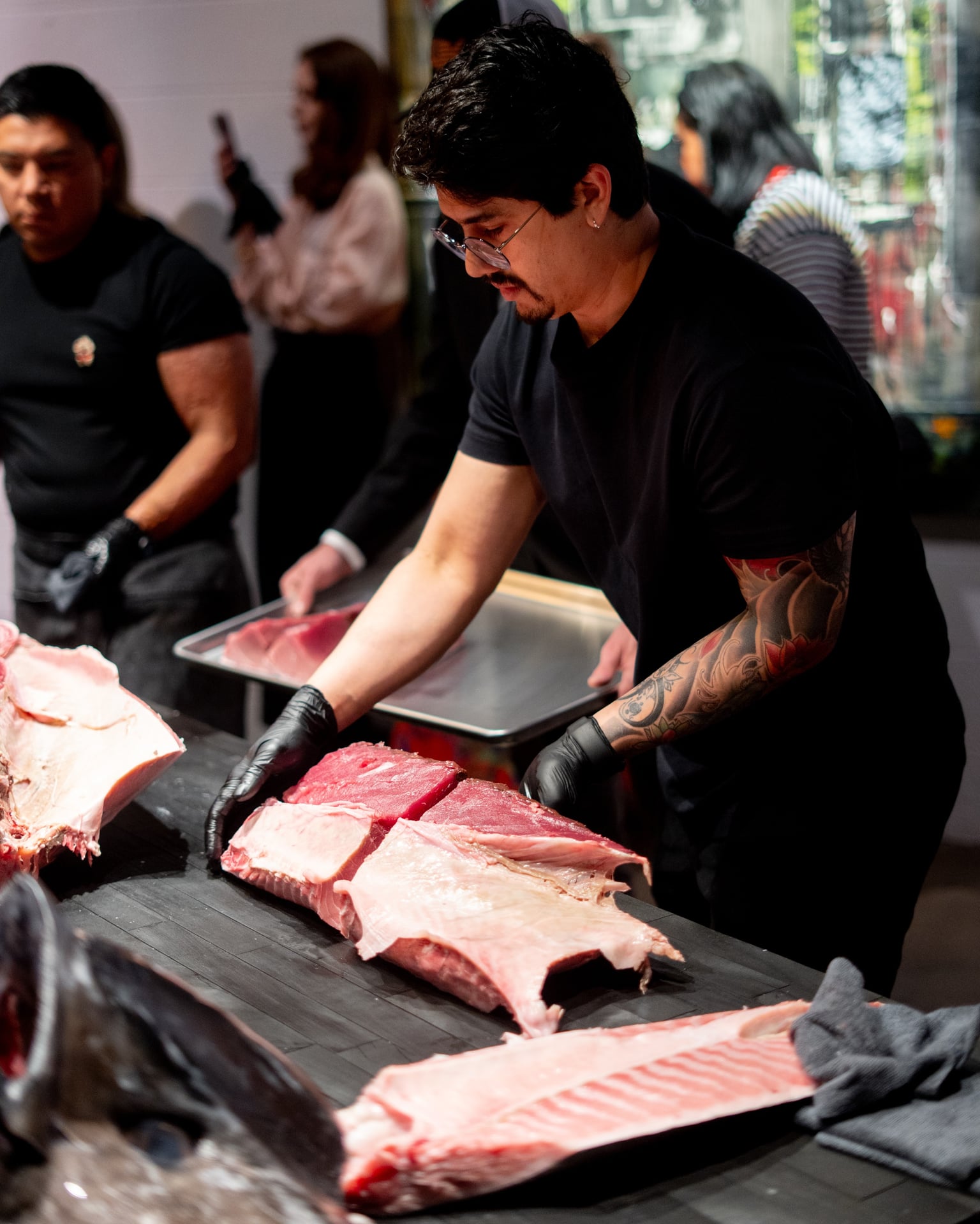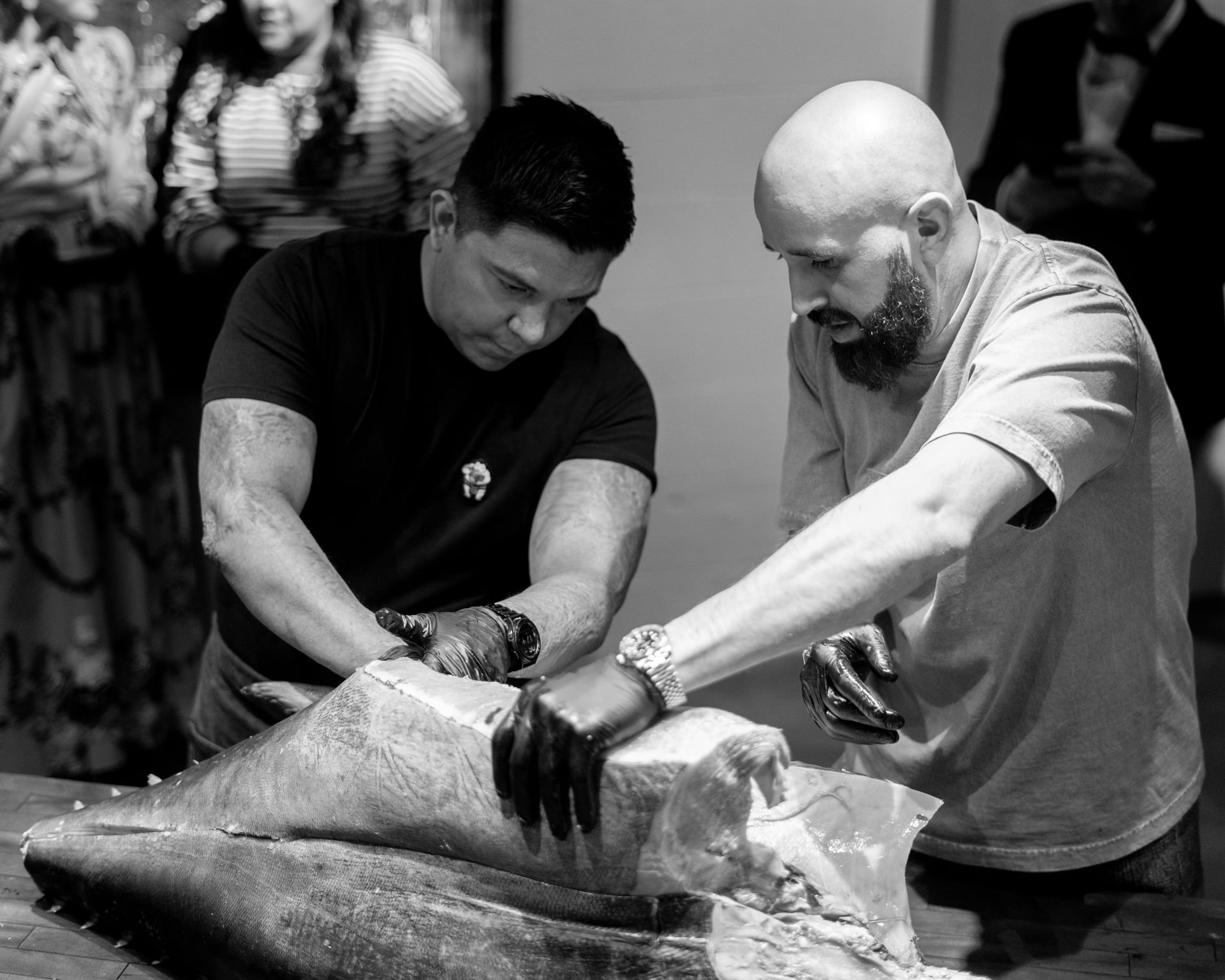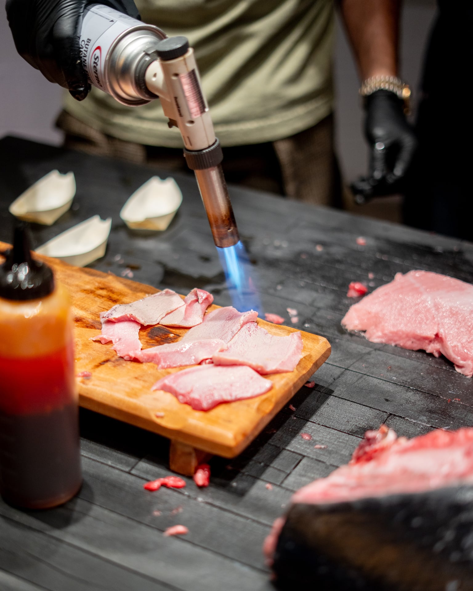 In a unique evening, the VAL gallery in Nashville became the perfect stage for a sensory experience that blended art, music, and gastronomy. Rey Bello, alongside Chef Alfredo Bueno from 888, and Tequila G4, brought together a 160-pound bluefin tuna from Spain, expertly cut by Alfredo to create six distinct dishes for an exclusive audience of 120 guests.