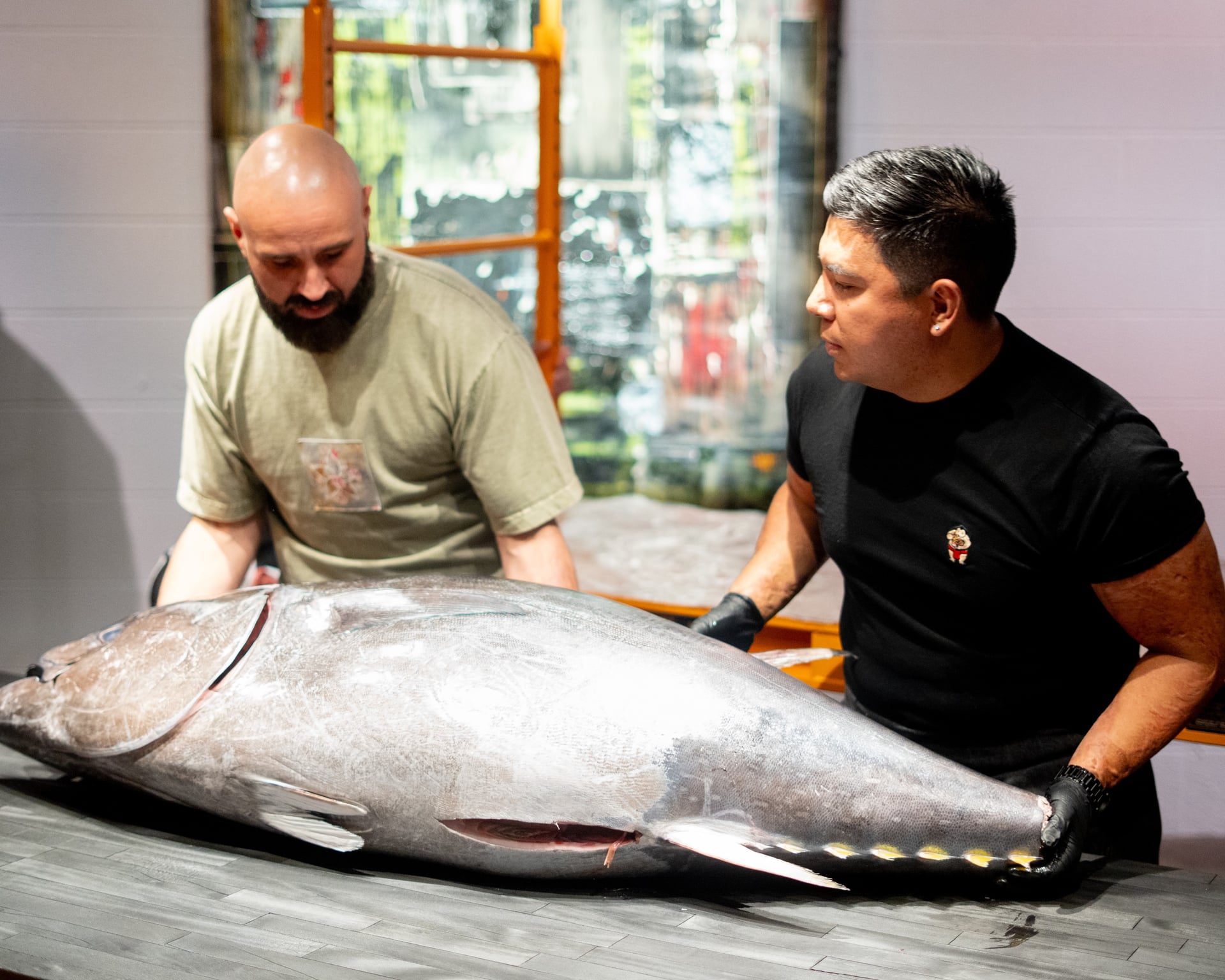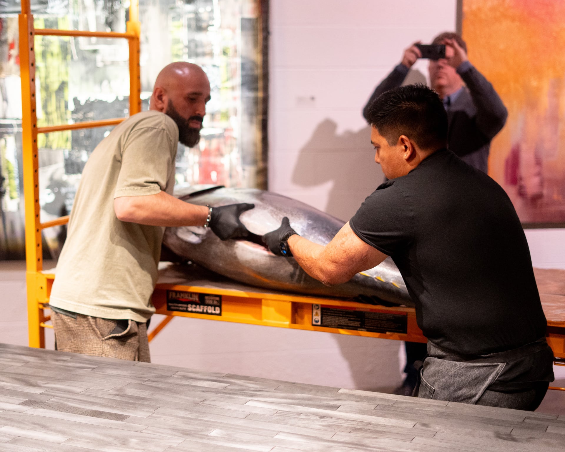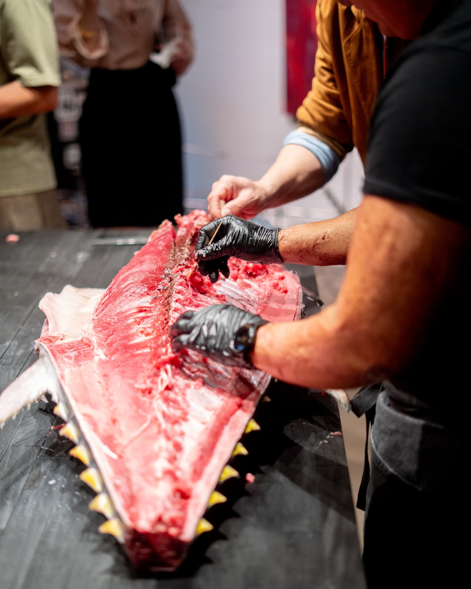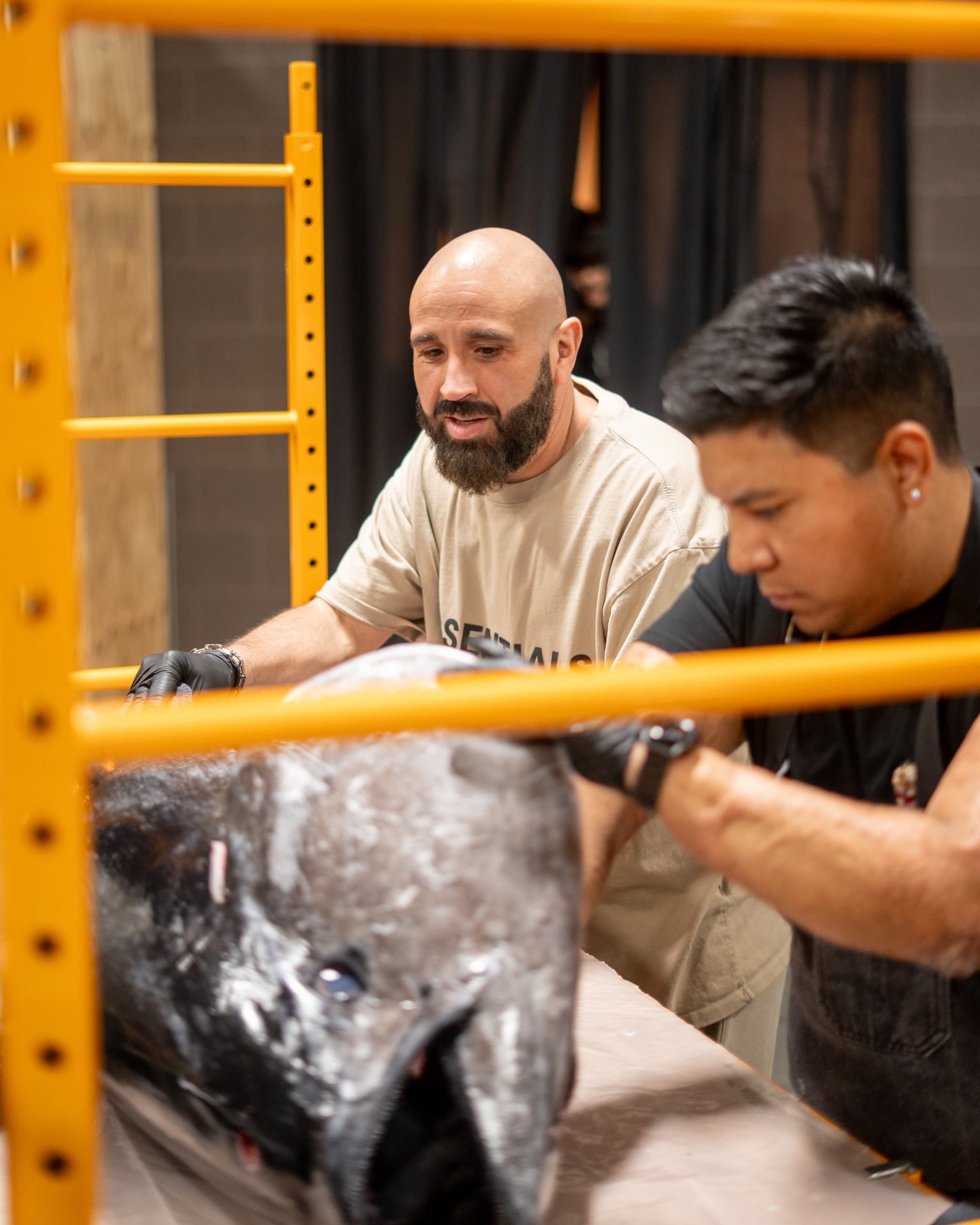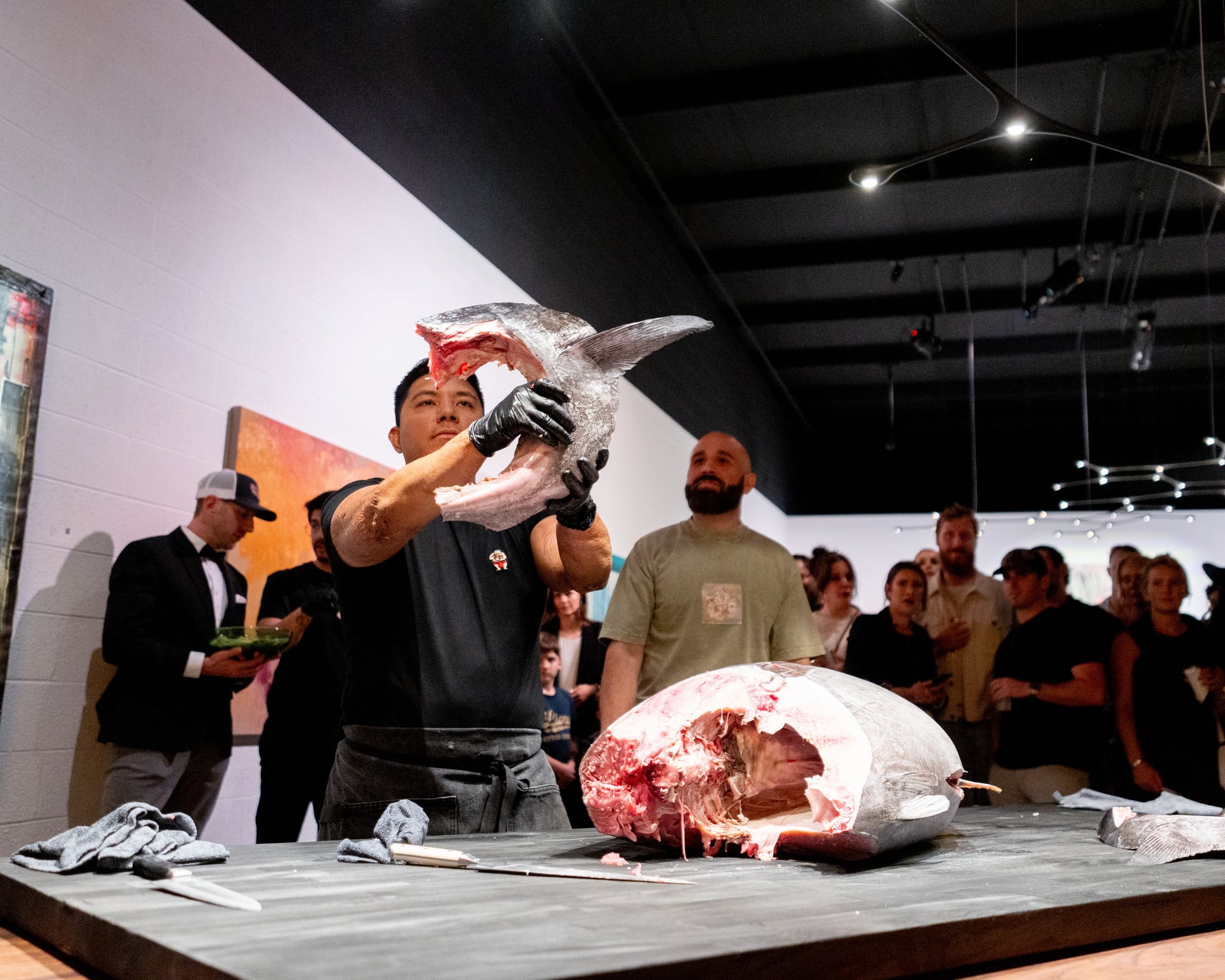 In a unique evening, the VAL gallery in Nashville became the perfect stage for a sensory experience that blended art, music, and gastronomy. Rey Bello, alongside Chef Alfredo Bueno from 888, and Tequila G4, brought together a 160-pound bluefin tuna from Spain, expertly cut by Alfredo to create six distinct dishes for an exclusive audience of 120 guests.