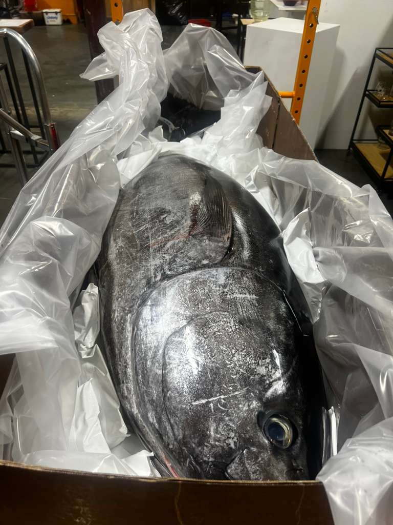 At the center of the evening stands a majestic bluefin tuna, flown in from Spain — honored through the ancient Japanese ceremony of Maguro Kaitai, the tuna cutting show that merges precision, respect, and beauty. Nearby, the aroma of slow-roasted pork fills the air, creating a dialogue between ocean and land, Japan and the South, delicacy and strength.